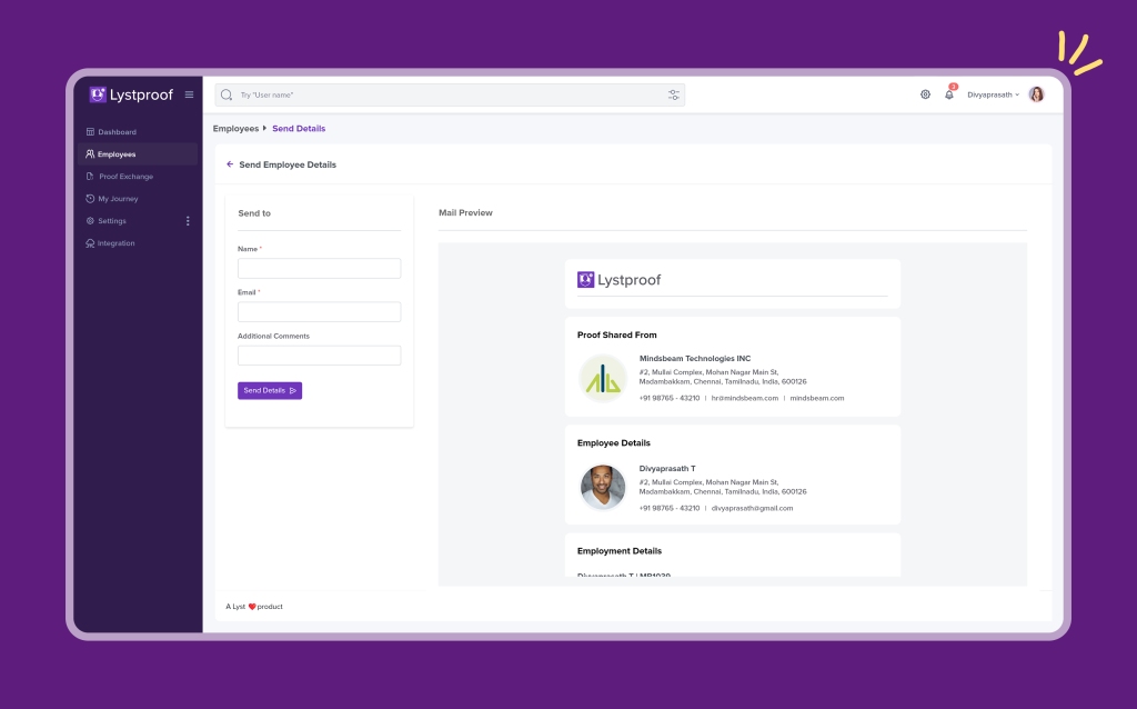 With Lystproof, make a difference. Not only streamlines exit tracking but also keeps your clean employee exit records accurate. Its smooth verification process even helps minimize candidate drop-off during background checks, making the entire offboarding process more efficient and reliable.